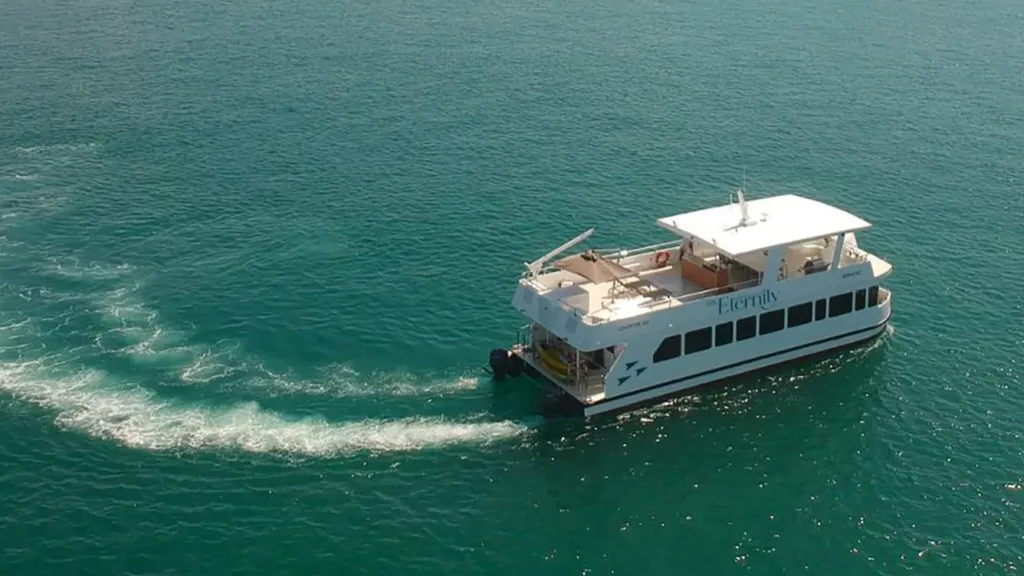 Introducing MS Eternity II, a stunning 55-foot yacht that epitomizes the perfect blend of sleek, contemporary design and exceptional functionality. With a capacity to host up to 35 guests, this yacht is expertly crafted to elevate your boating experience, ensuring comfort and enjoyment for all onboard.
