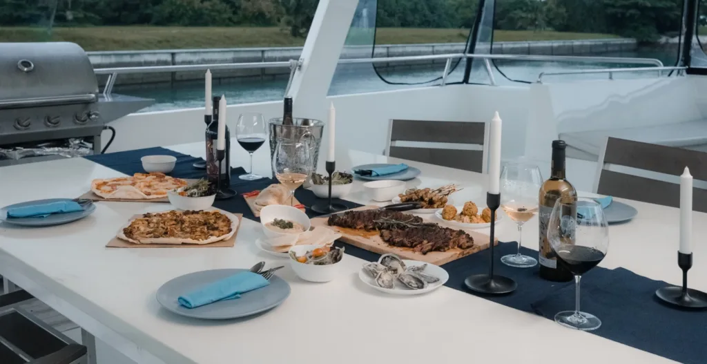 For those who relish fine cuisine, nothing compares to the joy of grilling on an open deck with vistas of the Southern Islands. Bask in the sunlight as it dances across the water and savor the soothing sound of waves gently caressing the yacht, all while indulging in sumptuous seafood and exquisite meats.